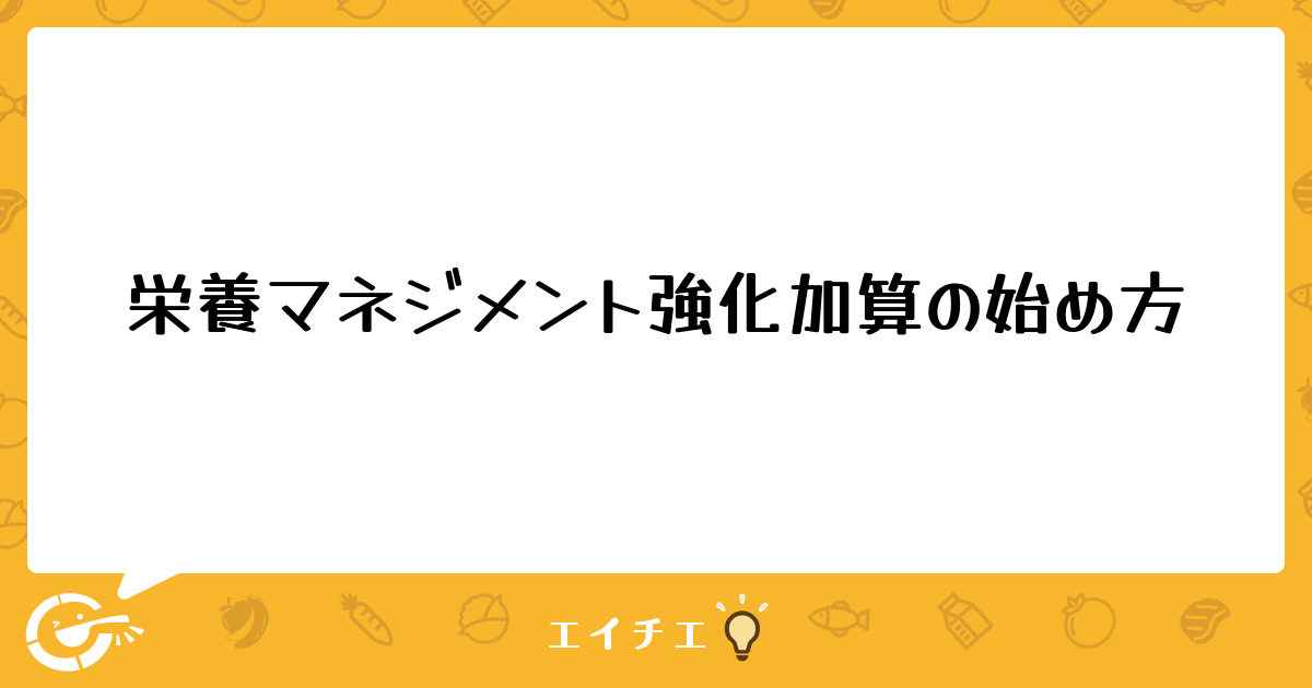 この度施設で栄養マネジメント強化加算をとる運びとなりました。
