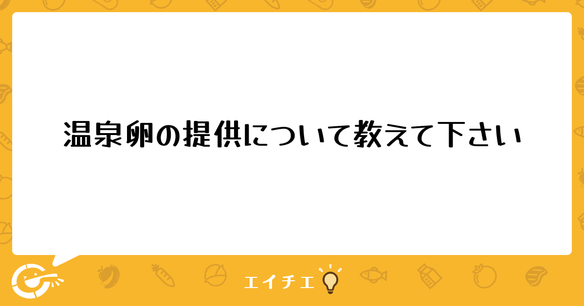 特養ですが、Drが『食欲のない人には半熟卵がいい』と看護者に話をしたらしく、温泉卵の提供をして欲しいとの要望が日々強くなってきております。ただ、厨房としては食中毒の危険があるのでどうしたものかと・・・温泉卵とか提供してもいいのですかねぇ?