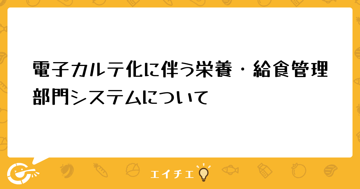 電子カルテ化に伴い、部門システムとして栄養・給食システムを導入することになりました。当院は650床以上の総合病院です。すでに電子カルテ化になっている病院様で、栄養・給食の部門システムでこんなシステムが良い、これは使いにくいなどありましたら教えて頂ければ幸いです。