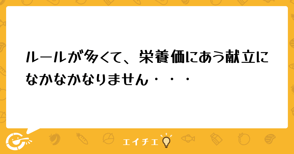 すべてにおいてのボリュームを出すとなるとカロリーを抑えるのは難しいと伝えたところ、あなた栄養士なんだから、難しくてもやってもらわないとって言われて・・