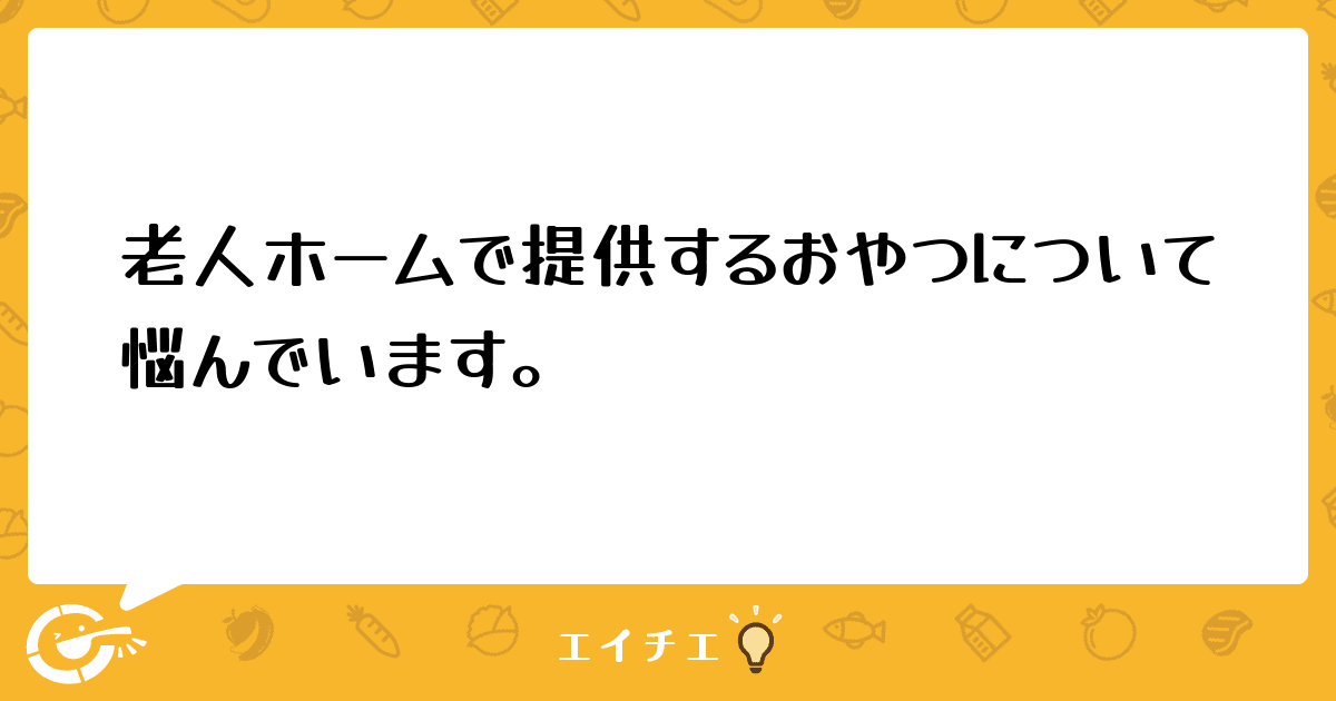 老人ホームに勤務されている方、うちではこんなおやつを提供してる!!また、好評だった!!等ありましたら是非アドバイスを下さい。