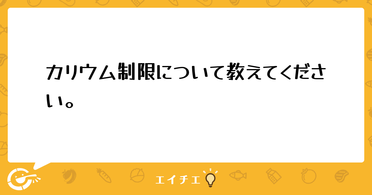病院に勤めている栄養士です。カリウムを制限した献立(カリウム1500mg以下)を立てる際に、成分値は生の野菜類などから立てているため「おおよそカリウム1800mg以下で良し」と勝手に考えて立てていました。この考えは間違いでしょうか?皆さんのところは1500mg以下におさえているのでしょうか?