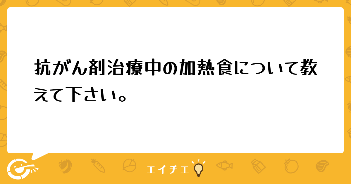 抗がん剤治療中に白血球が低下した場合、どのような食事を出しているのか情報をいただきたくて書き込みました。