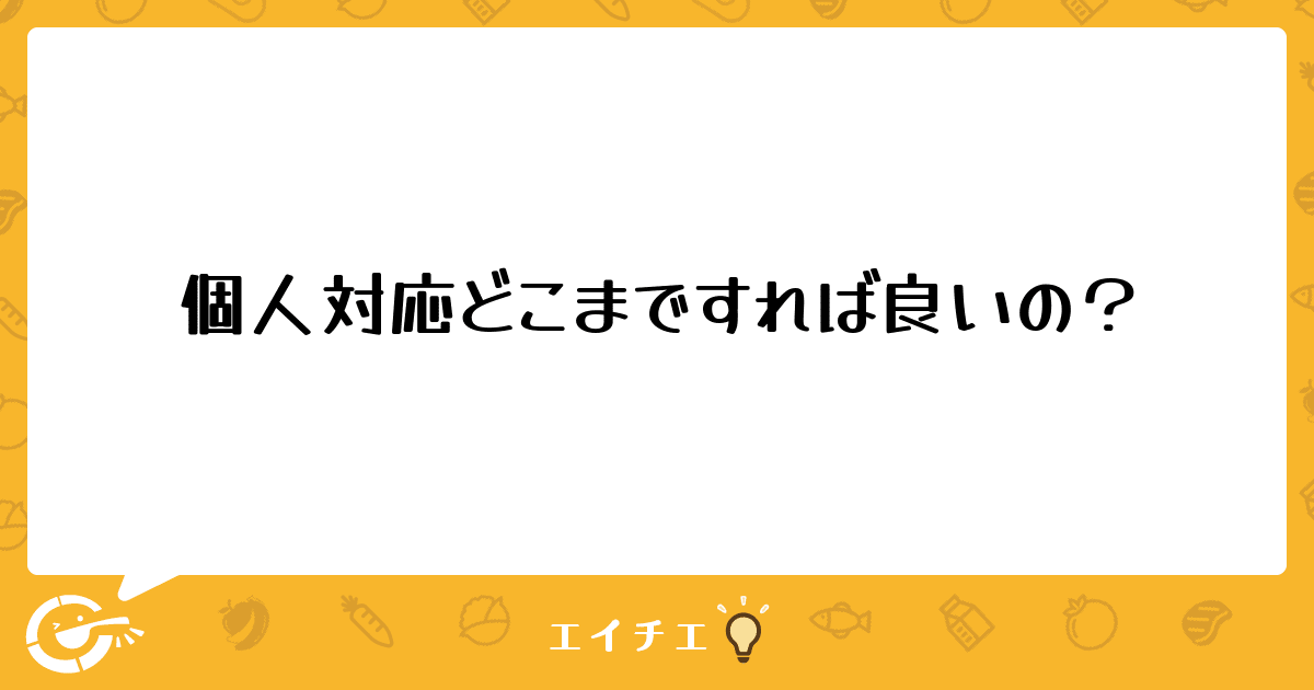 長期30床、短期10床の特養に勤める管理栄養士です。最近、利用者の個人対応について悩んでいます。食事形態は常食からゼリー食まであり、療養食もあり、それに加えて一人ひとりの嗜好に対応しています。ユニットケアのため、盛り付け配膳はユニットの介護員が行っていますが、上記のように個人対応が多いので、ほとんど厨房で盛り付けている状況です。厨房は労務委託です。私は厨房に入らず、指示のみです。「今日からAさんは○○禁で代替をお願いします」的な要望がどんどん出てきて、正直、厨房職員も混乱しています。結果、ミスも生じていますし、頭がついていけない調理員は退職していきます ほとんど私が退職に追い込んでいるようで、自分自身つらいです。献立指示書には調理員さんたちがミスのないように細かく指示を記入し、朝のミーティングでもその日の献立を確認し合うなどのいろいろやっていますが、厨房からは「覚えきれない・対応しきれない」と日々の大変さがわかる声が聞こえてきます。かといって、残食になるのを知ってて提供するのも嫌です。みなさんの施設での個人対応について教えてください。どこまで対応していますか?