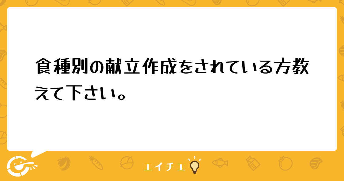 とりあえず、常食、軟食、ミキサー食の献立をたてたい。と思っています。