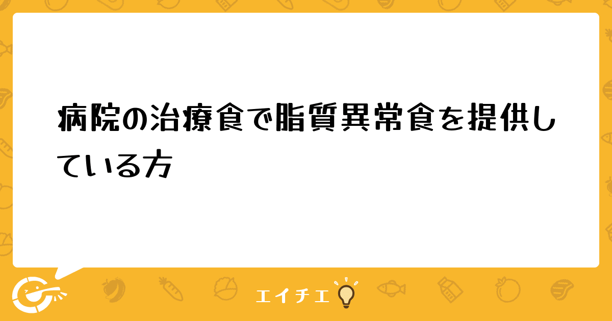 当院ではまだ、脂質異常食に対応していなく、参考にさせていただきたいと思います。