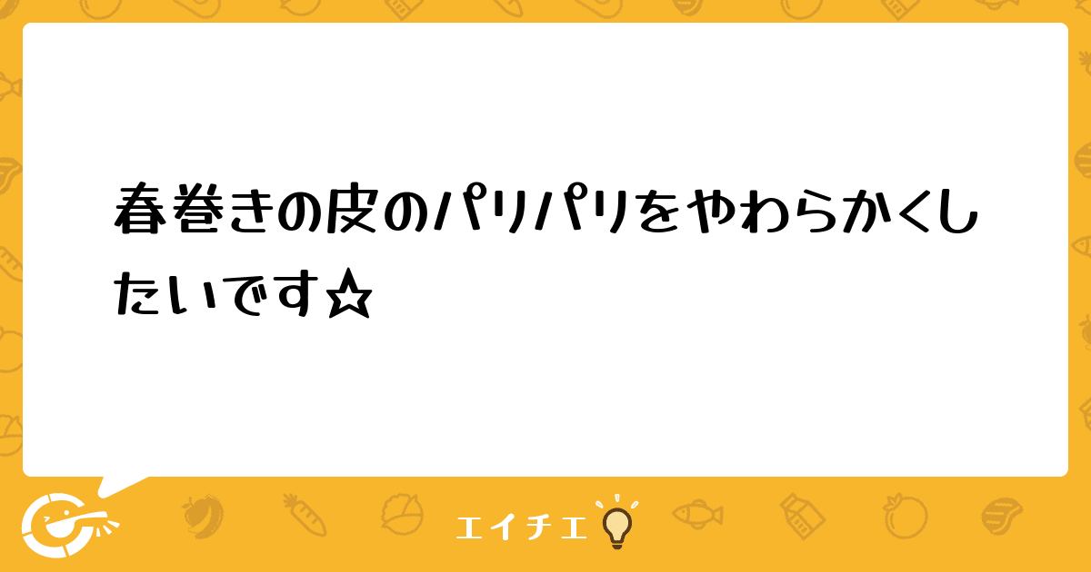 春巻きのパリパリした食感がとてもおいしいのですが・・・でも食べやすくして春巻きをおいしく食べてもらいたいなぁと思うので、どのようにしたら、高齢者の方にも喜んでもらえるのか、みなさんの施設・病院ではどのようにされておられますか?