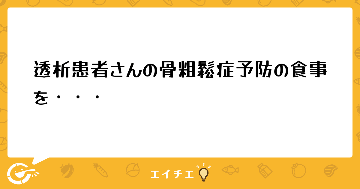 もし他に「透析患者さんの骨粗鬆症にはこれ!」というものがありましたらお教えください!!