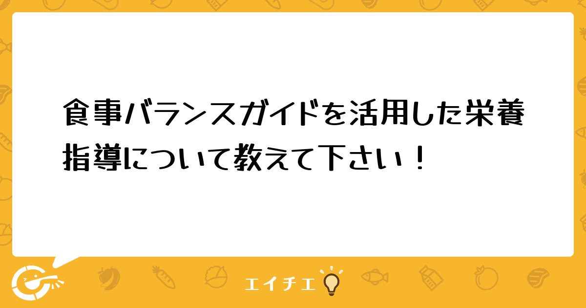 今まで栄養指導の経験がなかったのですが、これから「食事バランスガイド」を使って栄養指導をする機会がでてくるので、どのように指導をしたらよいのか(対象者様にご理解いただけるのか)不安があります。