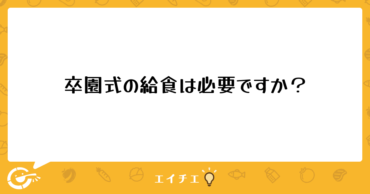 みなさんは障害児の卒園式には給食が必要だと思いますか?