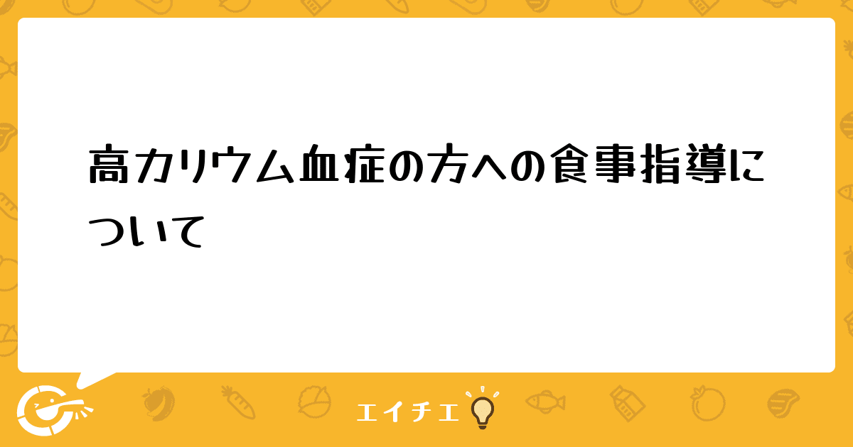検査をした医師からは、「なるべくカリウムを摂らないようにするしかない」というような指導だったようですが、カリウムの制限のほかに、カリウムの排泄を促す方法や、何か良いアドバイスがありましたらよろしくお願いいたします。