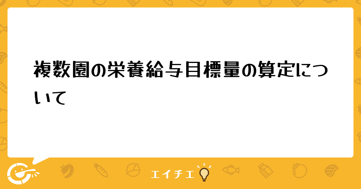 私の勤務する法人は最近複数の保育園を開園し、今度全園統一の栄養給与目標量を設定することになりました。ところが、それぞれ園児の体格や活動量が違うため、統一の目標量が決め辛い状況にあります。