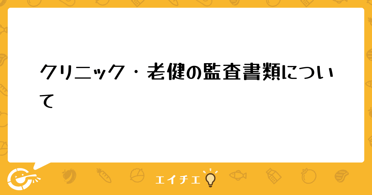 クリニックの監査が今月あるのですが、特養でしか働いたことがなため 何を準備したらよいのかかわかりません