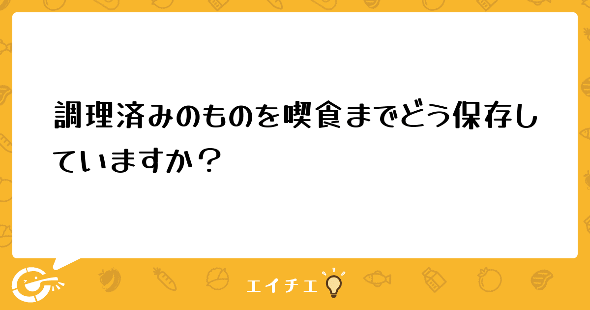 皆さんのところでは、調理済みのものを喫食までの間どの様に保存していますか?