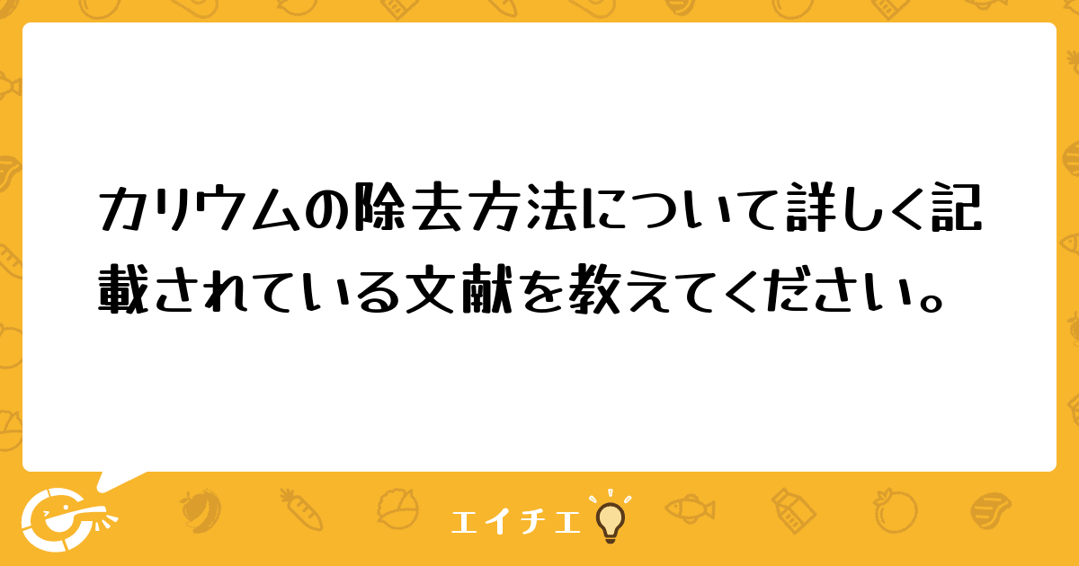 そこで、カリウムの除去方法について詳しく記載されている文献を知っている方がいましたら、教えてください。
