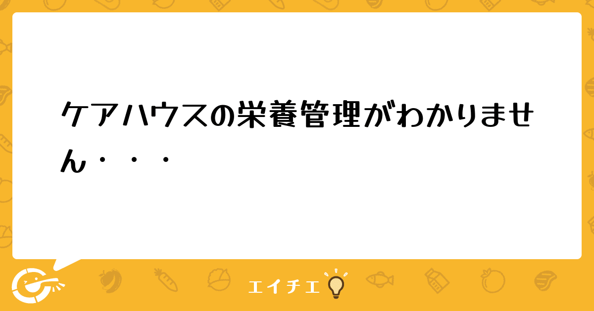 お疲れ様です。私はケアハウスと介護保険特定施設が一緒になった施設で働いてる栄養士です。