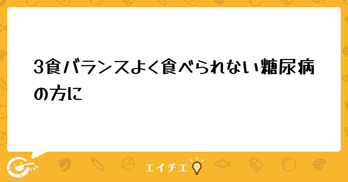 このような患者様は、3食バランスよく食べることがむずかしくどのように指導すればいいのでしょうか?