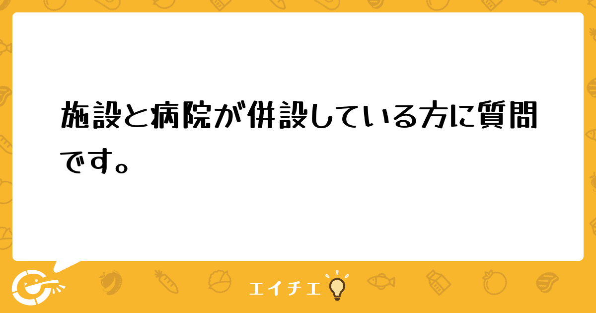 病院と施設が併設している方がいらっしゃれば、その点どのようにしているか聞きたいと思い、投稿しました。