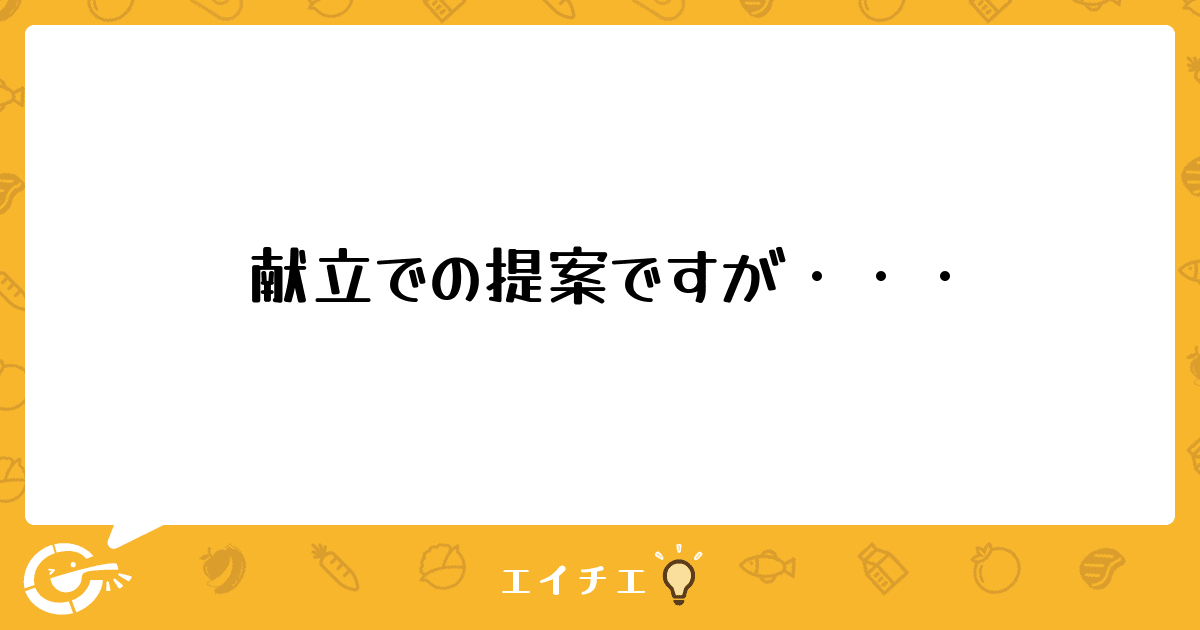 栄養士の経験がなく、お恥ずかしい質問ですが
