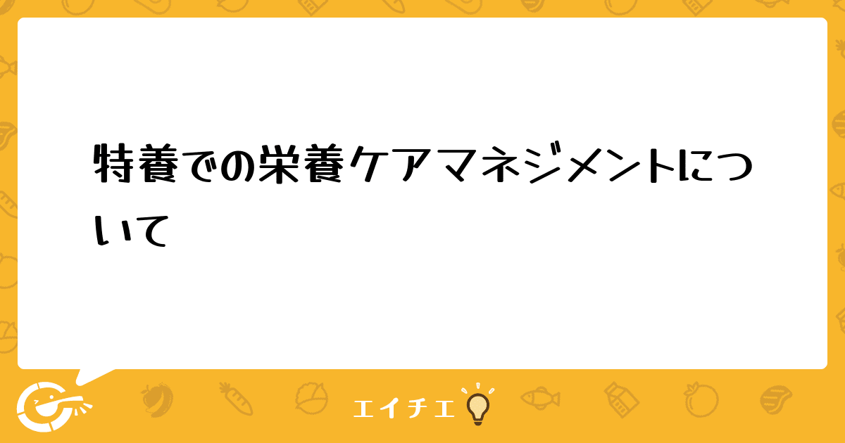 栄養ケアマネジメントについて、いくつかご質問させて下さい。