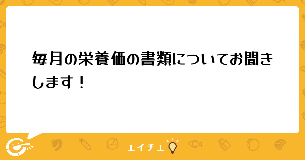 こんばんは。保育園の栄養計算に関してです。毎月のエネルギー以外の栄養価(蛋白質、脂質、鉄、Ca、ビタミンA、ビタミンB1、ビタミンB2、ビタミンC、食物繊維、食塩など)の平均値と目標量に対しての充足率は出していますか?献立ソフトがないため手計算だったりエクセルに入力し直したりが大変なので、例えば、エネルギー・蛋白質・食塩だけ、とかでもいいならそうしたいと思い相談しました(∋_∈)