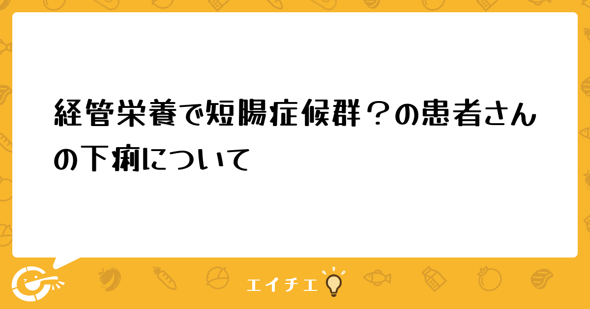 最近入院されてきた患者さんに、経鼻経管栄養で短腸症候群?(残存小腸1m90cm)で粘性の下痢がみられる方がいます。