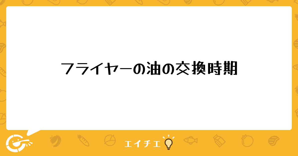 皆さんの施設ではフライヤーの油はどのくらいの期間で交換していますか?