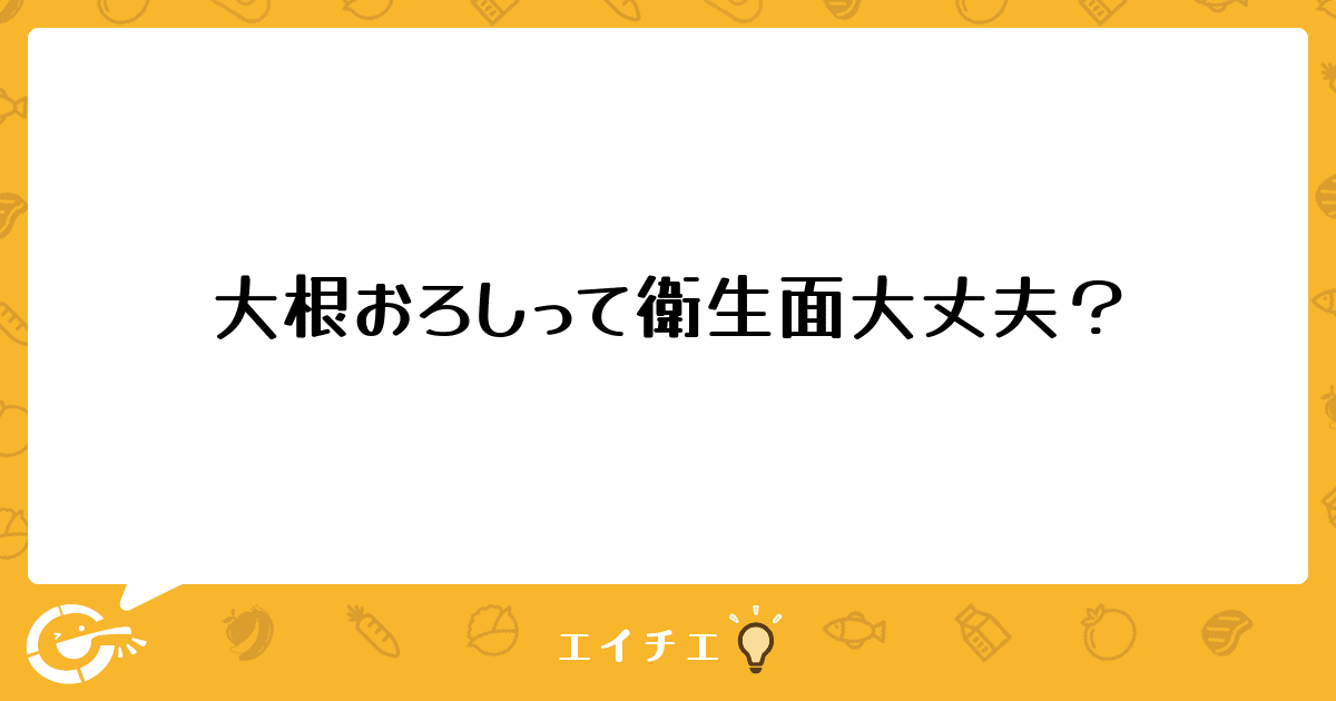 フードプロセッサーでおろすことにしました。が、そのフードプロセッサーはだれもが使う(衛生の知識がない人たちも使う)ので生のままで食べるのが怖いのです。ハンバーグの玉ねぎのみじんぎり等加熱後に食する物のときには、使う前によく洗い塩素消毒やアルコールを吹きかけて使っています。
