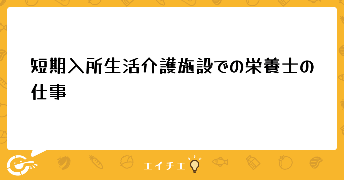 40床以下の「短期入所生活介護」施設で仕事をされている栄養士さんにお聞きしたいのですが、
