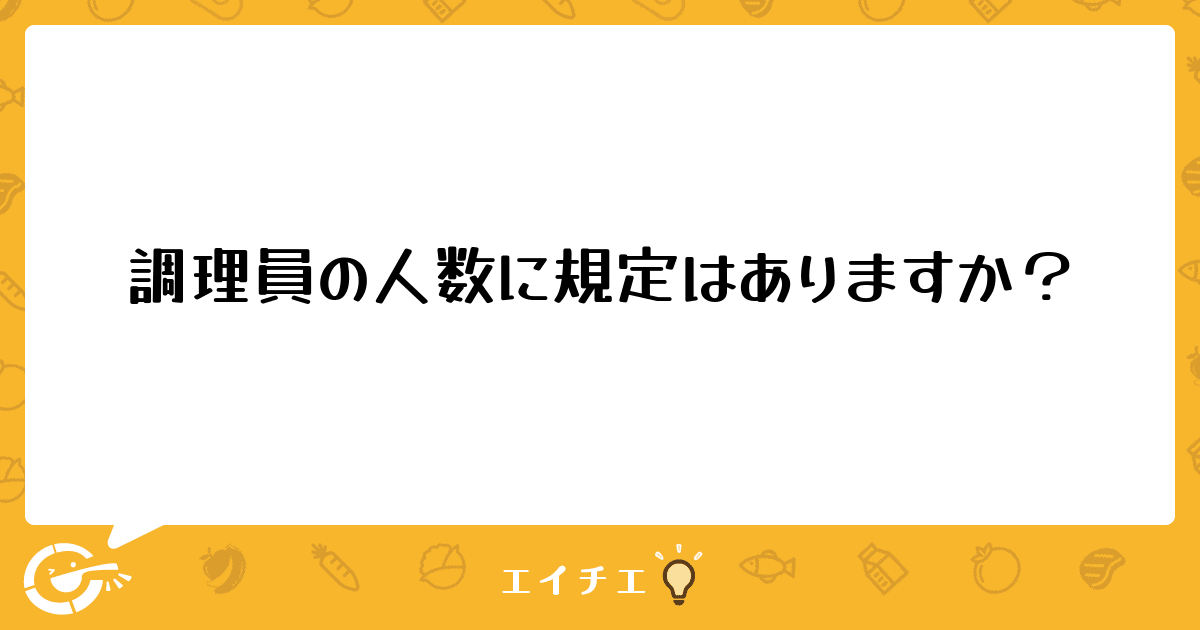 そこで質問なのですが、「〇〇名に対して〇〇名で調理にあたる」というような規定はあるのでしょうか?または「〇〇名を超えたら調理員は2人以上必要」というような…。