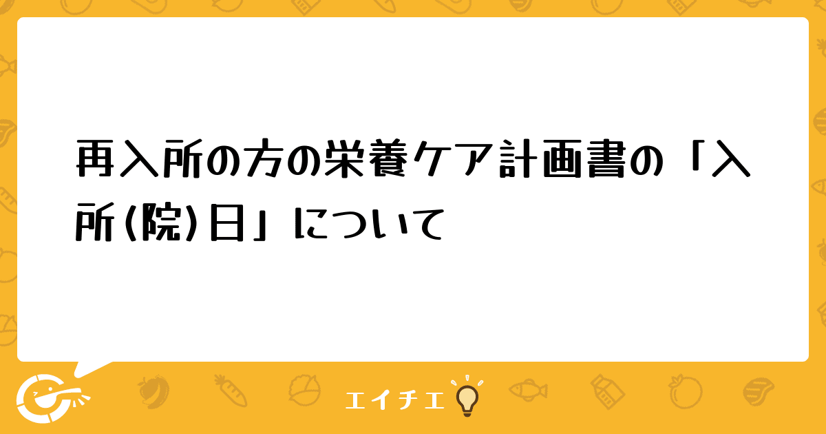 栄養ケア計画書の「入所(院)日」に記載する日付は、利用者様が再入所された場合、再入所日を記載するのでしょうか?