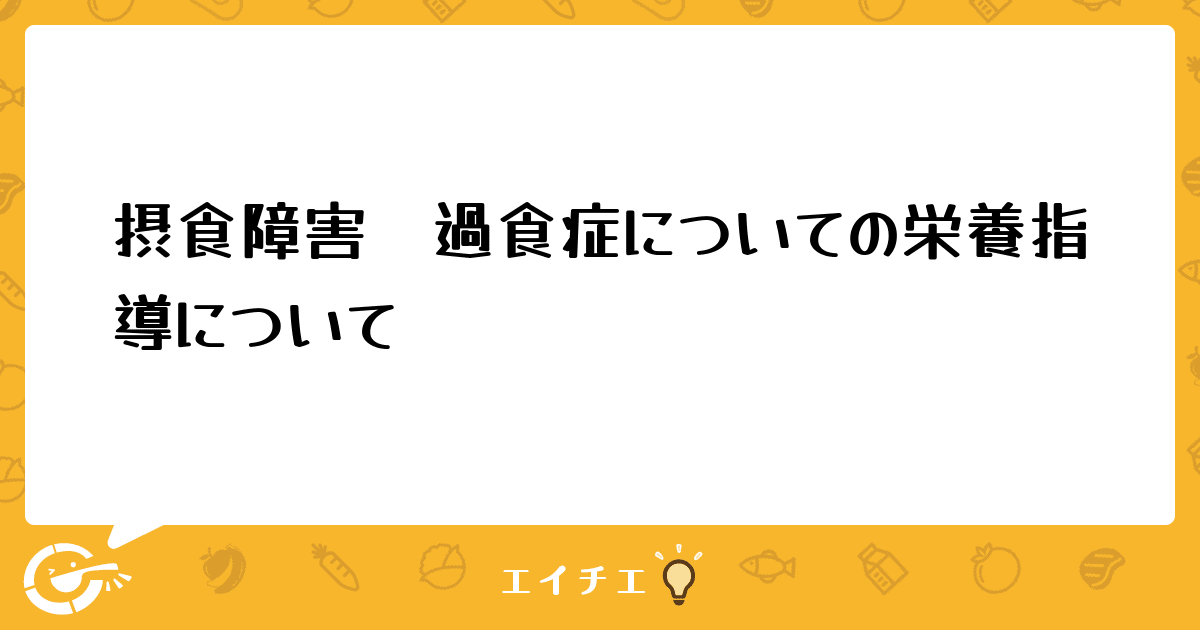 過食症で過食・嘔吐を繰り返している方の栄養相談について 良い知恵がありましたら、教えてください。