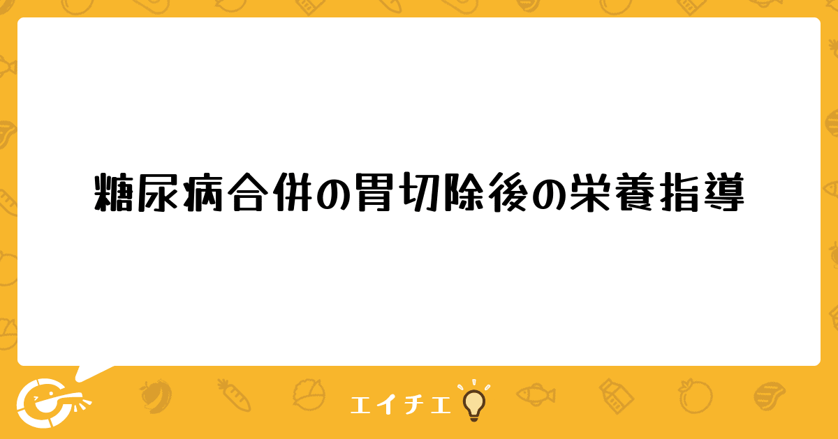 今度糖尿病合併の方の胃切除後の栄養指導を行うことになりました。