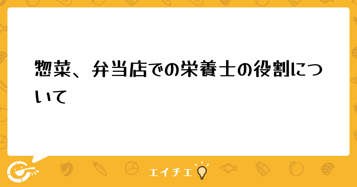 今月から、惣菜と弁当を売るお店で販売員として、パートで務めることになりました。私は調理はせず、販売だけです。ですが、栄養士免許を持っているため、調理師の店長と新しいメニューを開発したり弁当の彩りなどをチェックしてほしいと頼まれました。