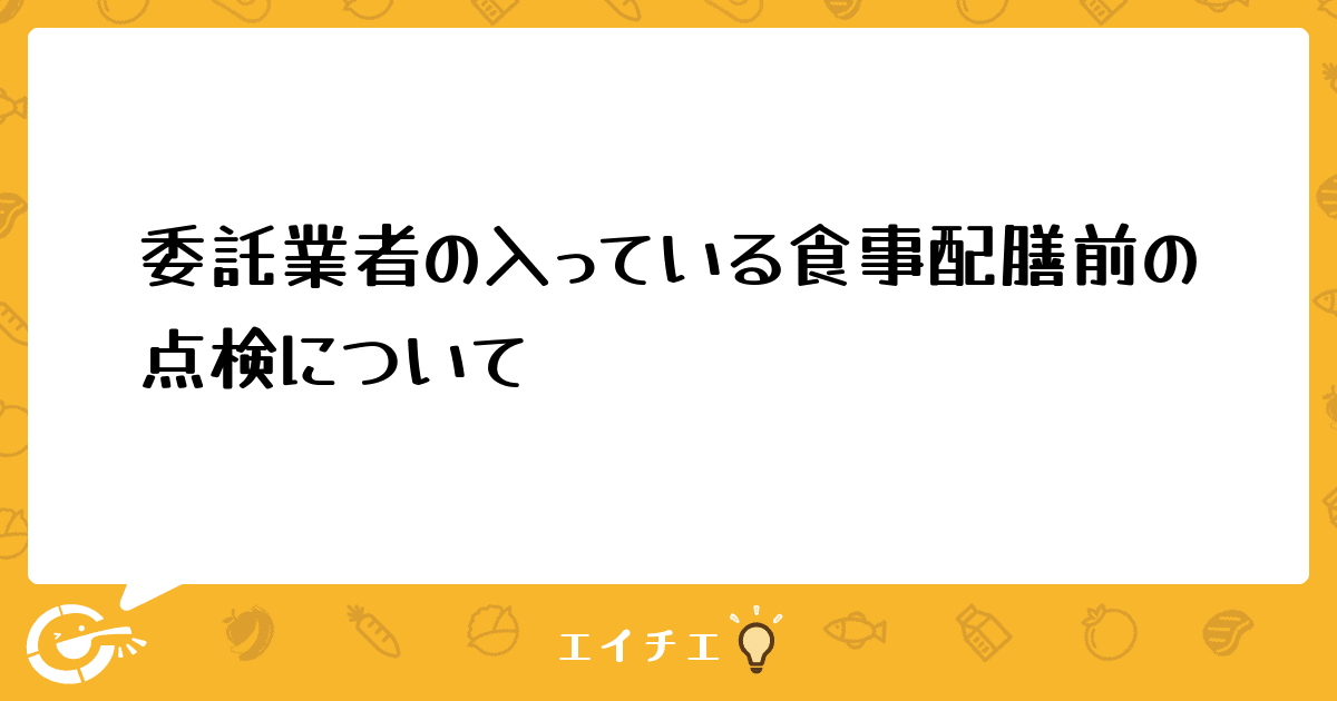 老健の管理栄養士をしています。クリニックと有料老人ホームも併設されており、その他に昼は通所リハビリと、デイケアの昼食の提供、昼、夕はお弁当配食サービスの提供をしています。給食の調理や発注は完全に給食会社に委託しているのですが、毎食の食事配膳前点検は施設側(栄養士が3名交代)で行っています。皆さんに質問なのですが、委託業者の入っている厨房内で配膳前点検をしている栄養士さんがどのくらいいらっしゃるのかと思いまして。少しづつ事業拡大していったので、少しでもミスを無くし、気持ちよく食事を召し上がって貰おうと配膳前点検は施設側の仕事で当たり前だと思っていたのですが、業務が増えて手が回らなくなってきたので、配膳前点検も完全委託してミスがあったら、委託側に直接病棟に謝罪に行って貰おうかと考えています。まだ、何も決まってないのですが、皆さんの意見を参考にしたいと思います。宜しくお願いします。