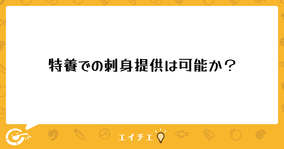 特養30名、併設のディサービス20名の施設で週1~2日の勤務のパート管理栄養士です。給食は7月まで委託会社の栄養士が献立作成し施設内の厨房で調理して提供しておりました。8月から施設の方針で委託会社は打ち切りとなりチルド食(業者より購入)に変更になり各ユニットで職員がボイルし提供しております。先日職員から「たまに利用者さんに刺身を食べさせたいがスーパーで買って提供して良いか」と聞かれ衛生上問題があるのでやめてほしいと言いました。それでは家族さんが持ってきたら良いのかと聞かれ「あえて家族さんがなま物を持ってくることはないのではないか」と言いましたが「以前の職場では買って食べさせていた」とのこと。皆様の施設では刺身の提供はありですか教えてください。