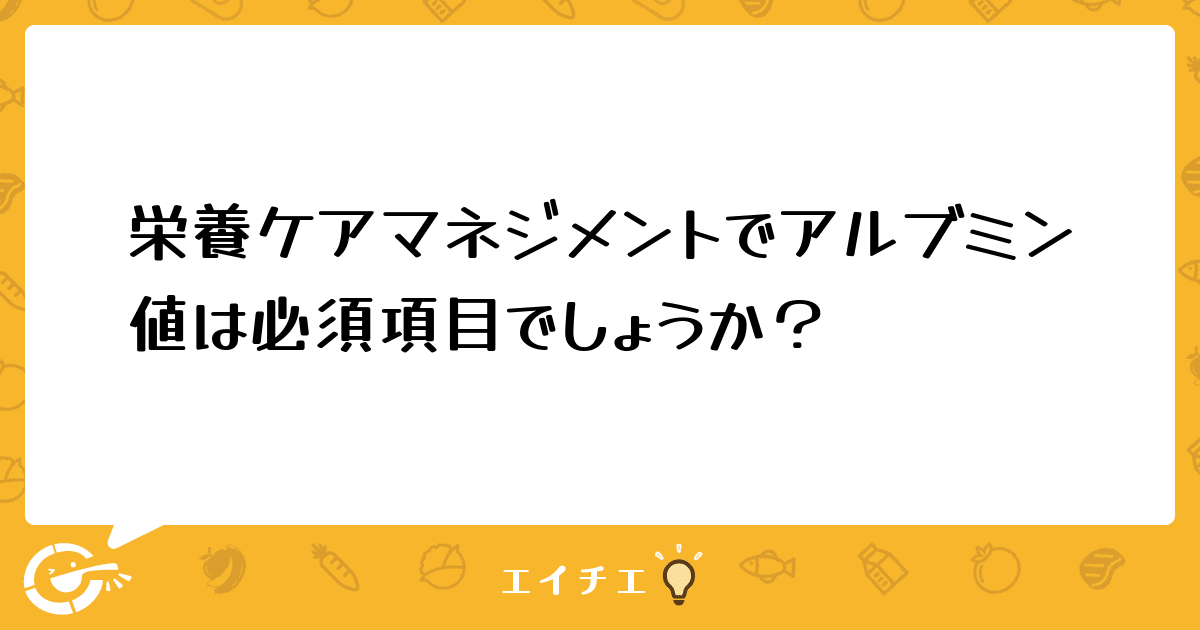 栄養ケアマネジメントがスタートした時点では、たしかアルブミン値は必須項目ではないとの認識がありました。