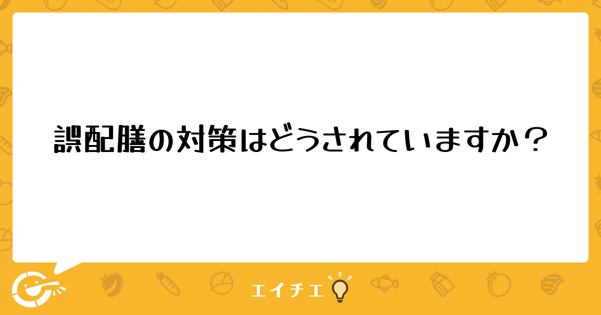 今は自分なりに工夫しミスもだいぶ減りましたが残念ながら0ではありません。皆様の病院では配膳のミスを防止するためにどのような工夫をされていますか?宜しければ教えて頂けたらと思います。