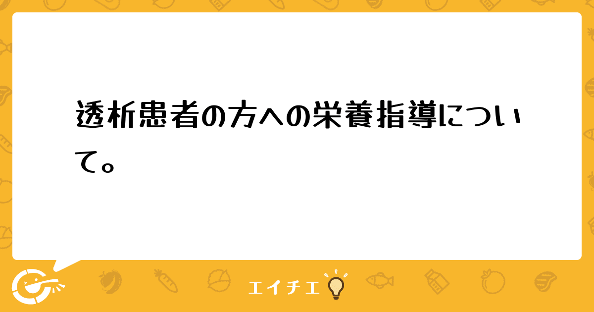70代の女性で糖尿病から透析に至る患者様から栄養相談の依頼がきました。