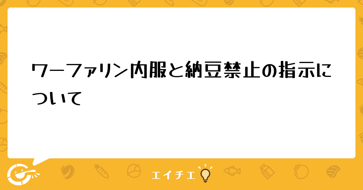 入院中、ワーファリン内服の患者さんには納豆禁止の指示が出ますが、ドクターの指示漏れが多い上に、指示を受ける看護師のチエック漏れも頻繁です。医療安全委員会で話し合いが持たれましたが、納豆を出さなければいいという意見が押され、献立から納豆が消えることになりました。