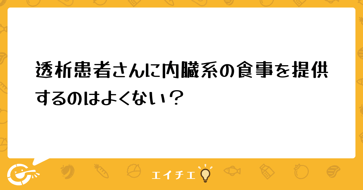 私の職場では、透析患者さんには内臓系(モツやレバー)の食事を提供しない方がよいといわれるのですが、その理由がわかりません。