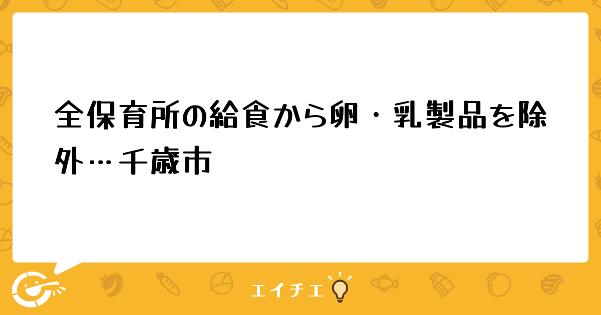 「北海道千歳市は、給食の際にアレルギー児童に誤って配膳するミスを防ぐため、市内すべての保育所の給食から、卵と牛乳・乳製品を除外することを決めた。