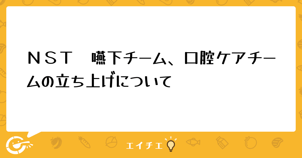 当院ではこの度、NSTにて嚥下チームと口腔ケアチームを立ち上げることになりました。そのため、新たに規約を設ける必要があるとのことで、調べるようにと言われたのですが、どれだけ調べても、NSTそのものの規約は見つけられても、嚥下チーム、口腔ケアチーム単体の規約というものが見つけられません。