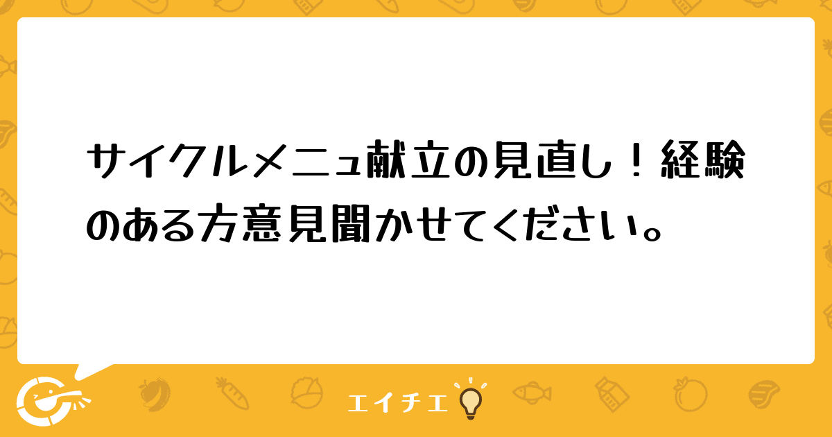 そんな矢先、上が食堂に対するアンケートを実施し、その結果、2ヶ月のサイクルメニューでここ何年間も続くマンネリメニューに不満がでて、献立の見直しの声も出ています。