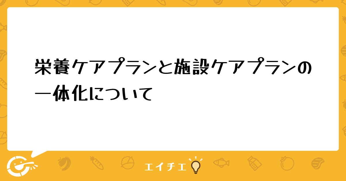 そこで、業務の短縮化ということで施設ケアアプランと栄養ケアプランを一体化してよいと示されている介護保険法の記入場所を知りたいです。分かる方、教えてください。