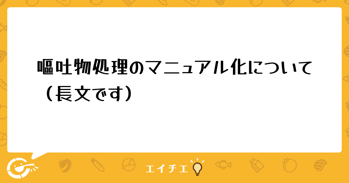 ただ、保健所の衛生係の人が来た時に、「食事中に嘔吐物のかかった食器は誰が処理するのか、また、嘔吐の原因の見極めはどうするのか」その点に関するマニュアルを作成するように言われました(した方がいいのでは?というニュアンスだったかもしれません)。