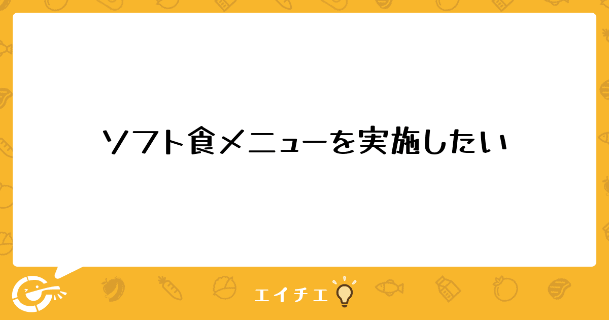 25年度はソフト食導入について検討していきたく 皆さまのところではどのように導入されているか ぜひ 具体的な事例をお聞きしたく 投稿致しました。