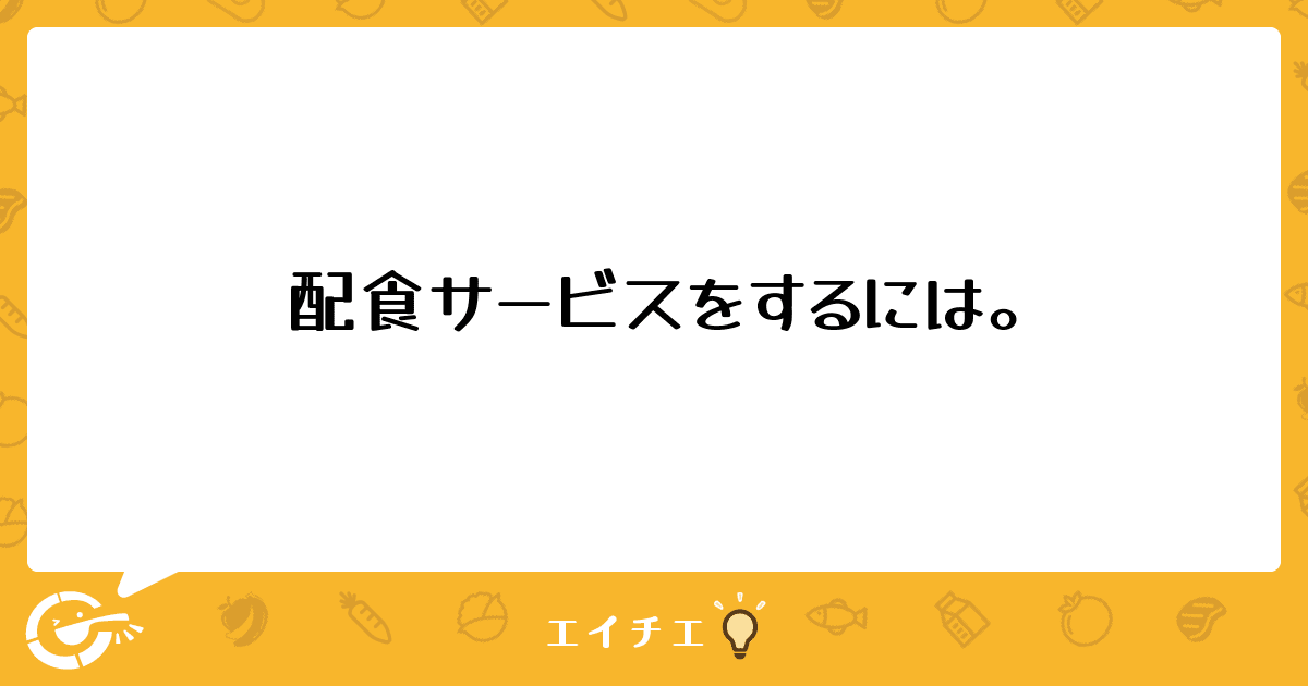 お疲れ様です。少しお尋ねしますが、今高齢者施設で働いていますが、施設から配食サービスをするようにと言われていまして、前々から自分でも興味があったのでさせて頂く事にしましたが実際するにはどの様な方法で進めれば良いのでしょうか?
